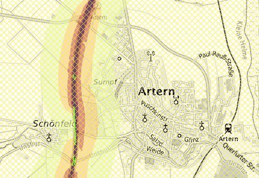 Diese Kartierung wurde auch für die Stadt Artern und die Gemeinde Reinsdorf durchgeführt. Es ist vorgeschrieben, die Lärmkarten zu veröffentlichen.