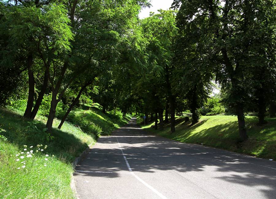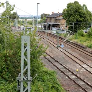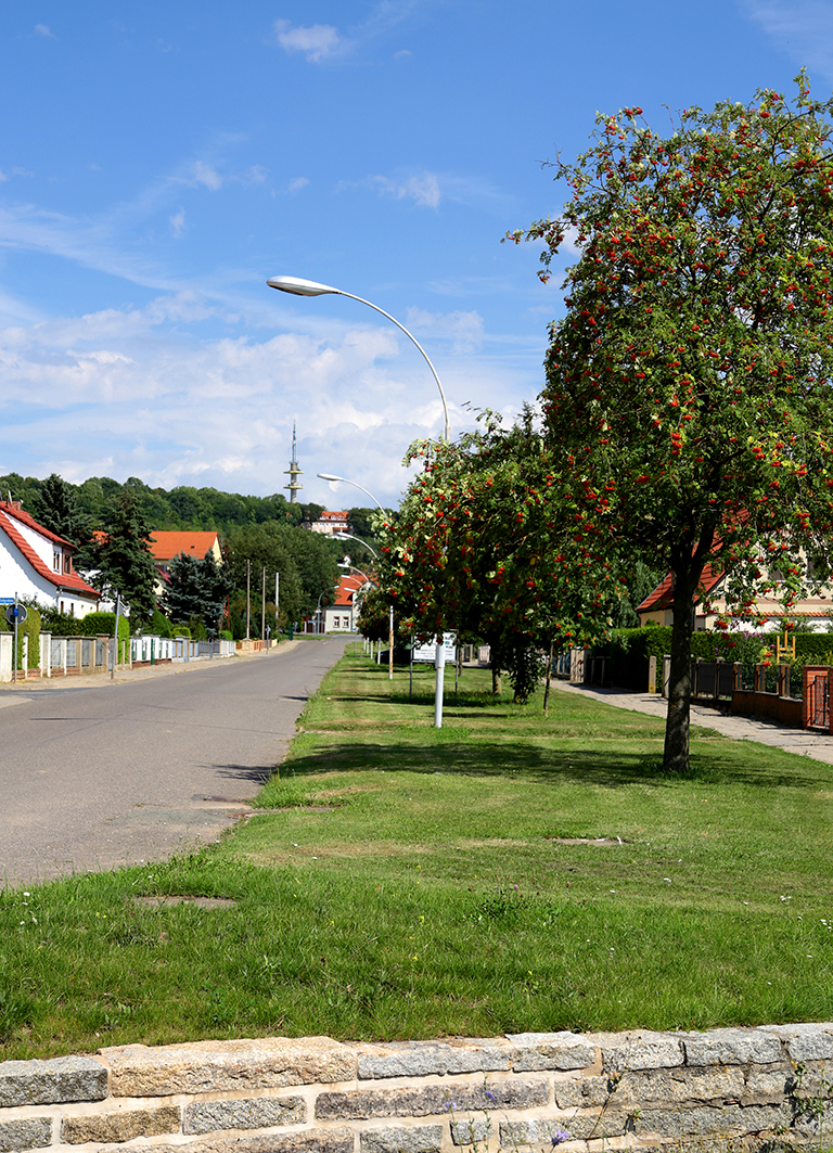 Der Kyffhäuser-Feengrotten-Wanderweg führt durch das Stadtgebiet vom Kyffhäuser kommend Richtung Saalfeld.