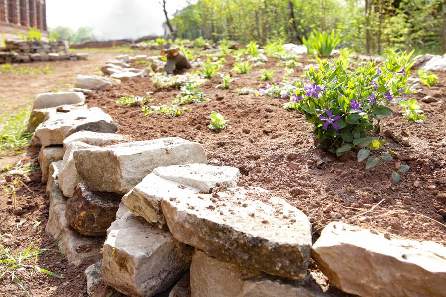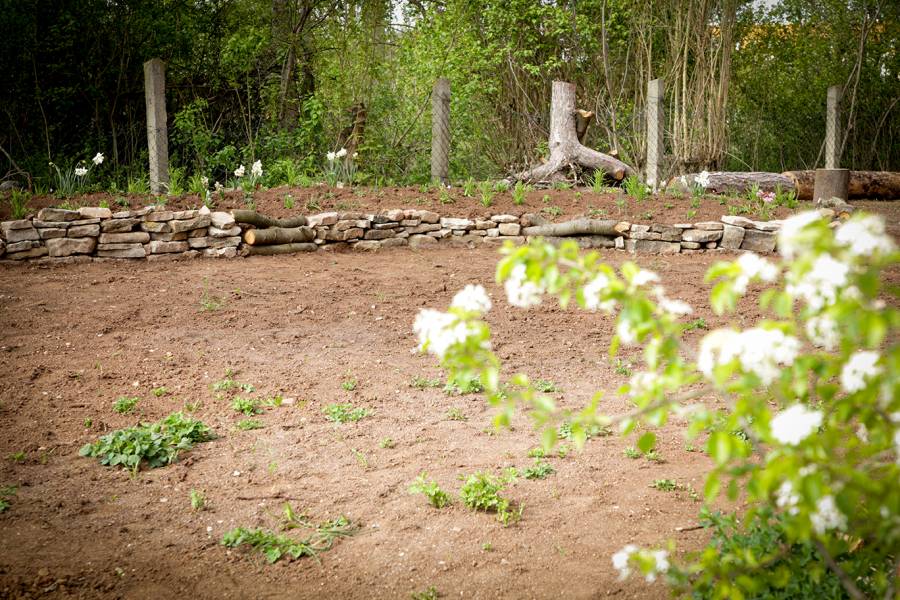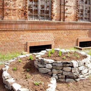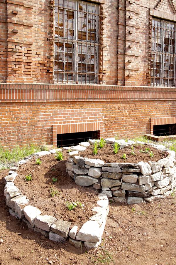 Das Gelände der Industriebrache soll mit Erdhügeln gestaltet werden. Diese Hügel werden jeweils mit einer Trockenmauer eingesäumt und anschließend mit entsprechenden Heil- und Wildpflanzen bepflanzt.