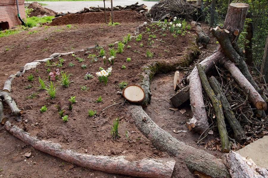 In einem Teilbereich, für die Bevölkerung unzugänglich, soll eine Wildnisecke entstehen. Das vorhandene Totoholz wird aufgeschichtet und mit einer Initialbepflanzung aus gebietseigenen Heilpflanzen versehen.